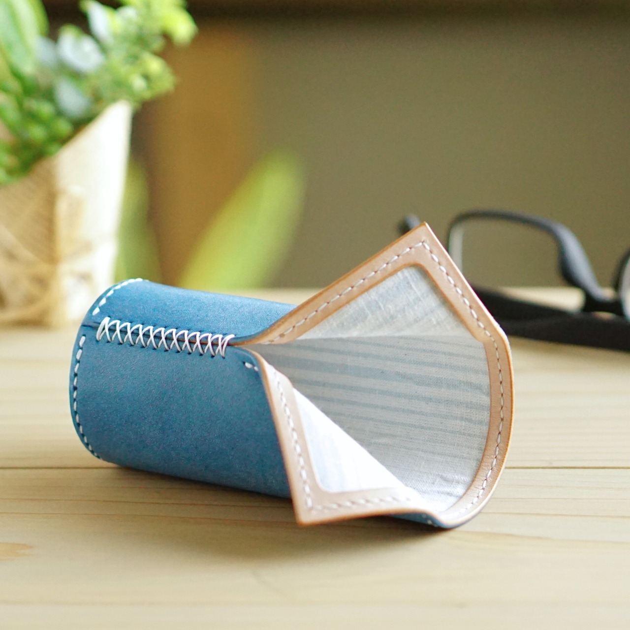 総手縫いのメガネスタンド