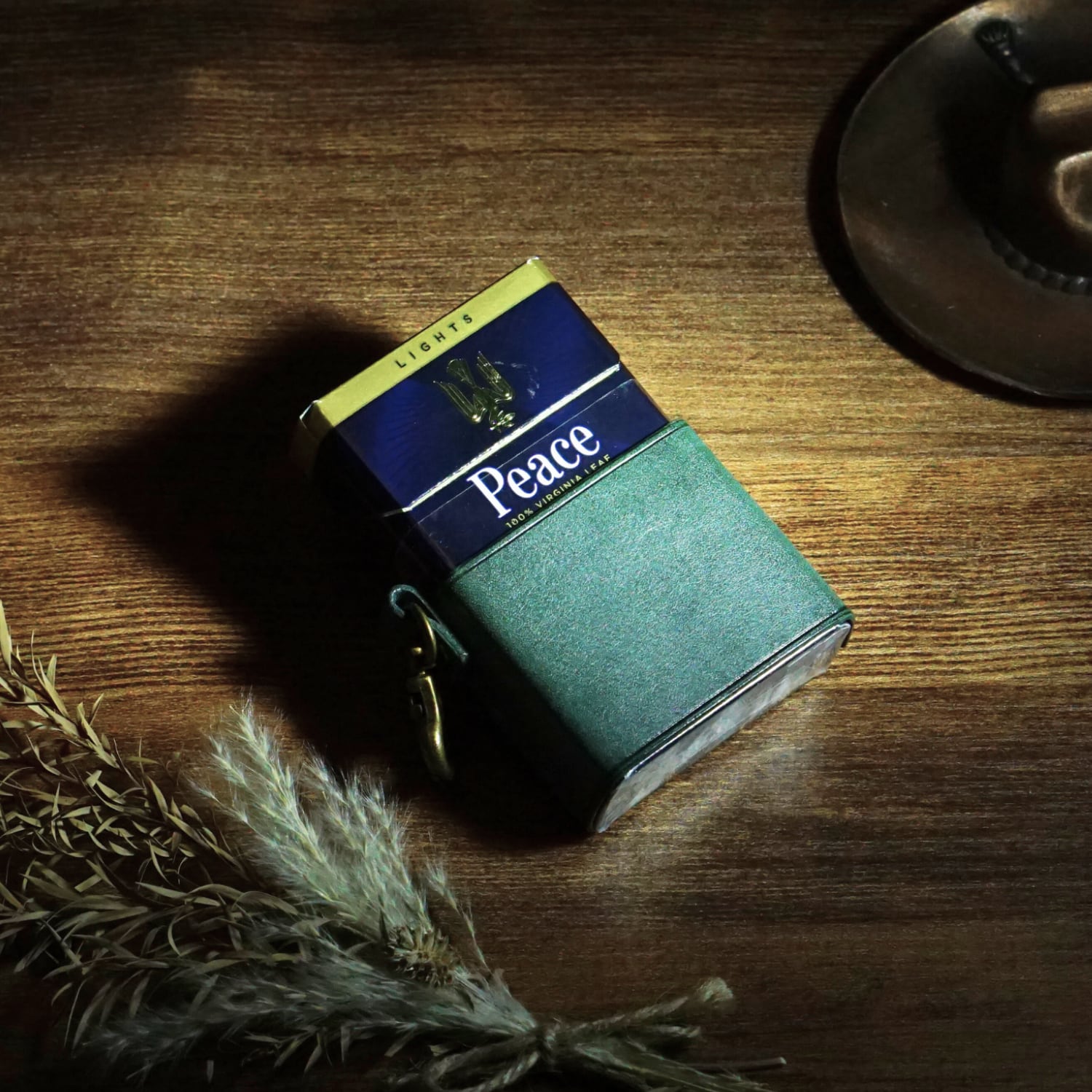 【本革】タバコケース(ピース 専用) 国産 ロロマ レザー ☆グリーン