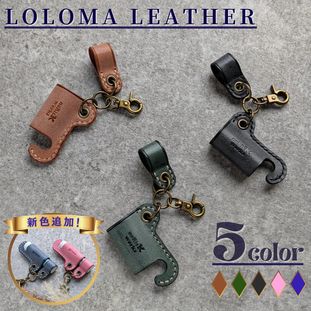 【受注生産】リップクリームケース キャップホルダー 付 | 国産 本革 ロロマレザー